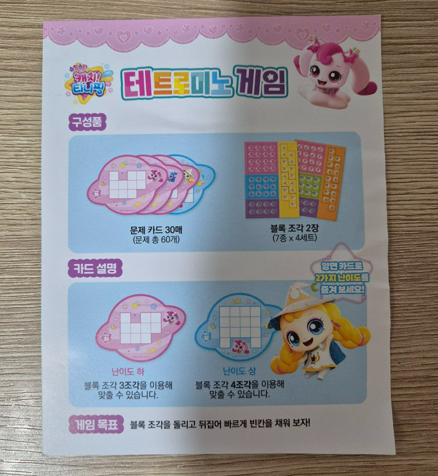 요즘 집에서 아이들과 함께 할 수 있는 놀이를 찾고 있었는데, 우연히 발견한 티니핑 테트로미노 게임! 인기 애니메이션 캐치! 티니핑 캐릭터가 등장해서 아이들도 좋아하고, 테트리스처럼 블록을 맞추는 게임이라 두뇌 발달에도 좋아 보여서 바로 구매해봤어요.