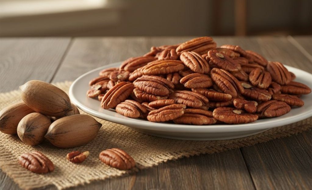 피칸은 식이섬유와 건강한 지방이 풍부해 식후 혈당 상승을 완만하게 만들어 줍니다. 당지수(GI)가 낮기 때문에 당뇨병 환자에게도 부담이 적으며, 인슐린 저항성을 개선하는 데 도움이 됩니다. 단, 당뇨 환자의 경우 염분과 당분이 첨가되지 않은 생 피칸을 선택하는 것이 좋습니다.